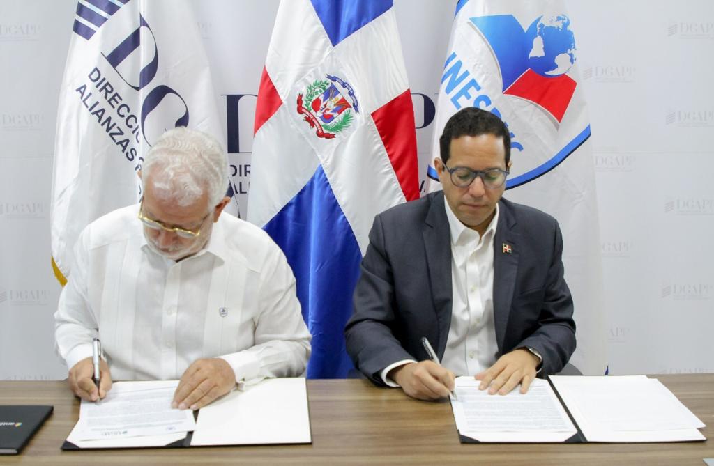 Santo Domingo, República Dominicana. – La Dirección General de Alianzas Público Privadas (DGAPP) y el Instituto de Educación Superior en Formación Diplomática y Consular (INESDYC), órgano académico del Ministerio de Relaciones Exteriores (MIREX), firmaron un acuerdo de colaboración que permitirá especializar al servicio exterior radicado en las sedes diplomáticas en materia de alianzas público-privadas.