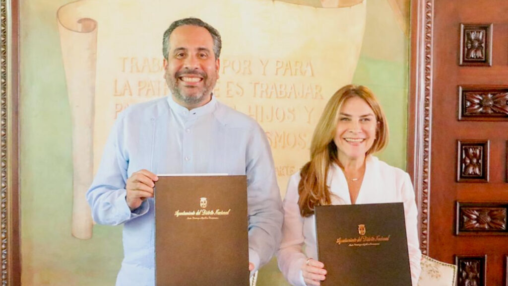 La alcaldesa Carolina Mejía y el director ejecutivo del Inefi, Alberto Rodríguez Mella, tras rubricar sus firmas, se comprometieron “a coordinar, supervisar, desarrollar e implementar actividades conjuntas tendentes a generar y fortalecer capacidades técnicas y productivas, necesarias para la consecución de la práctica saludable del deporte en los torneos intercolegiales”.