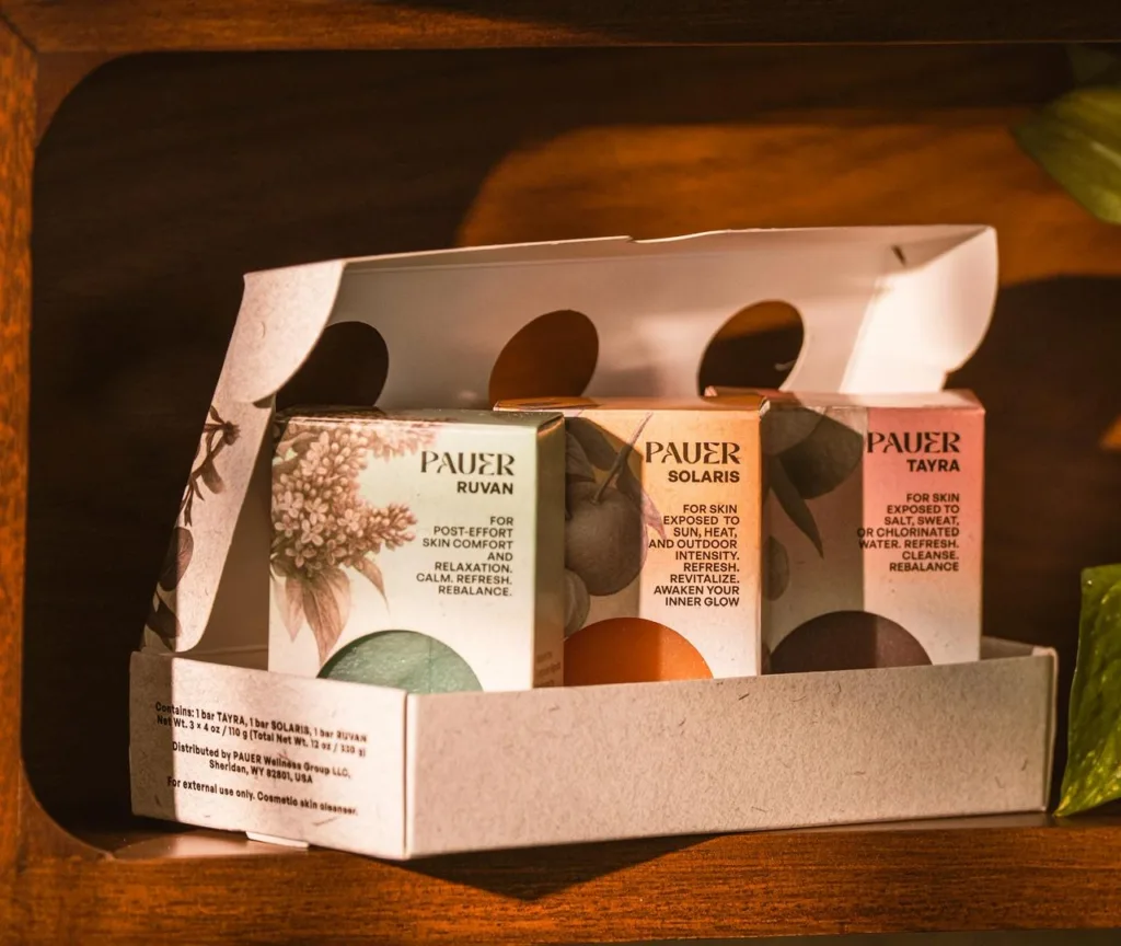 PAUER estructura su propuesta en tres rituales: TAYRA, ritual acuático enfocado en atletas expuestos al cloro y al agua salada; SOLARIS, ritual solar pensado para corredores y entrenamientos al aire libre; y RUVAN, ritual nocturno diseñado para favorecer el descanso y la regeneración de la piel. Cada producto incorpora ingredientes naturales como polvo de perla, manteca de murumuru, aceite de jojoba y células madre de azafrán, formulados para restaurar, nutrir y fortalecer la piel que vive al límite.