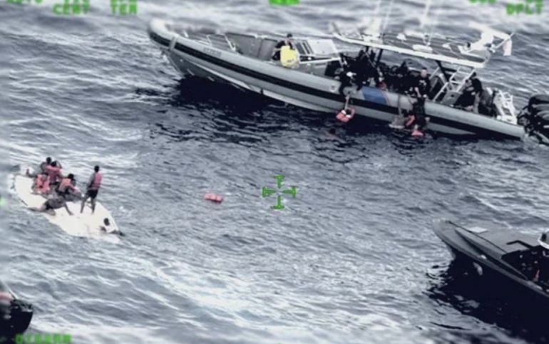 Los vigilantes de la Guardia Costera recibieron una comunicación cerca de las 11:47 a.m. de ayer, informando que la tripulación de un avión de la CBP había divisado una embarcación volcada y personas en el agua.