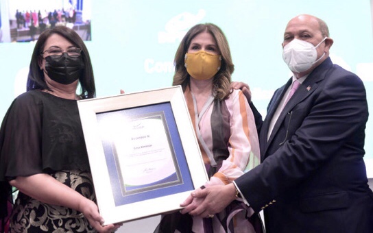 En el marco de la actividad, el Infotep entregó un reconocimiento a Circe Almánzar, por su colaboración leal y voluntaria en favor de la formación y el fomento de la equidad de género en nuestro país.