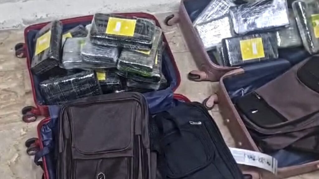 En presencia de un fiscal, se procedió a abrir el equipaje, ocupando en dos maletas, cuatro mochilas en cuyo interior se confiscaron un total de 39 paquetes de la sustancia, con un peso preliminar de 41 kilogramos.