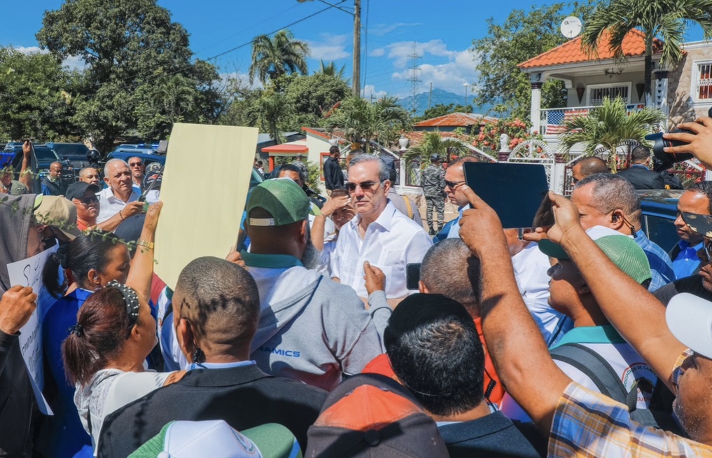 El presidente Luis Abinader en su viaje a Bonao este sábado detuvo la caravana en que se desplazaba para escuchar a los comunitarios que en su trayecto lo saludan y querían expresarles