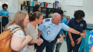 Santo Domingo, R.D. – El director general de las Escuelas Vocacionales de las Fuerzas Armadas y de la Policía Nacional (DIGEV) del Ministerio de Defensa (MIDE), coronel José Ramón Reyes Suárez, FARD (DEM), recibió la visita de cortesía de la señora Stephanie Holsey, esposa del almirante Alvin Holsey, comandante del Comando Sur de los Estados Unidos de América (USSOUTHCOM) acompañada de la señora Varinnia Durán de Fernández, presidenta de la Asociación Dominicana de Esposas de Oficiales de las Fuerzas Armadas (ADEOFA) junto a una comitiva oficial de los Estados Unidos de Norteamérica.