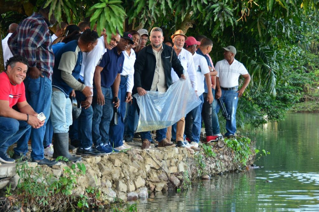 Durante un acto celebrado en el Municipio de San Antonio de Guerra, el Lic. Hecmilio Galván liberó simbólicamente en una laguna unos 500 alevines, que son parte de la donación de alevines mas grande realizada en Republica Dominicana y que ha incluido también capacitaciones para más de 4 mil productores y emprendedores, quienes han sido apoyados para desarrollar sus proyectos acuícolas de manera exitosa.