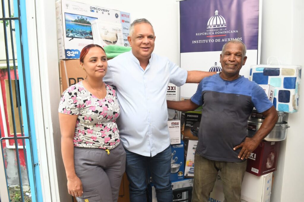 José Paulino Duarte y Carmen Tavares, esposo y sobrina de la señora Liriano Santos, respectivamente, fueron quienes recibieron los enseres, tales como nevera, estufa, televisor, licuadora, tostadora, juegos de ollas y calderos, entre otros utensilios.