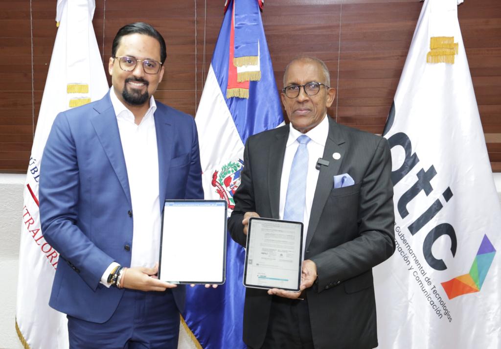 El convenio quedó oficializado con la firma digital del contralor general Félix Santana García y del director ejecutivo de la OGTIC, Bartolomé Pujals. Ambos funcionarios rubricaron el acuerdo en dispositivos electrónicos.