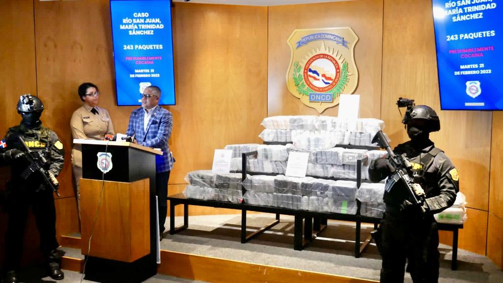 Santo Domingo RD,>La Dirección Nacional de Control de Drogas (DNCD) y la Armada de República Dominicana, apoyados por miembros del Ministerio Público, como parte de la ampliación de los operativos en contra del narcotráfico, incautaron 243 paquetes presumiblemente cocaína, mediante labores de inteligencia conjunta, desarrolladas en la provincia María Trinidad Sánchez.