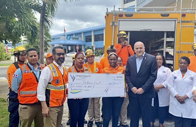 Santo Domingo RD,>La Defensa Civil de la República Dominicana recibe una contribución económica ascendente a un millón de pesos por parte de la Fundación Alexis Victoria, con el objetivo de apoyar las acciones de labor altruista que realiza esta institución en el país.