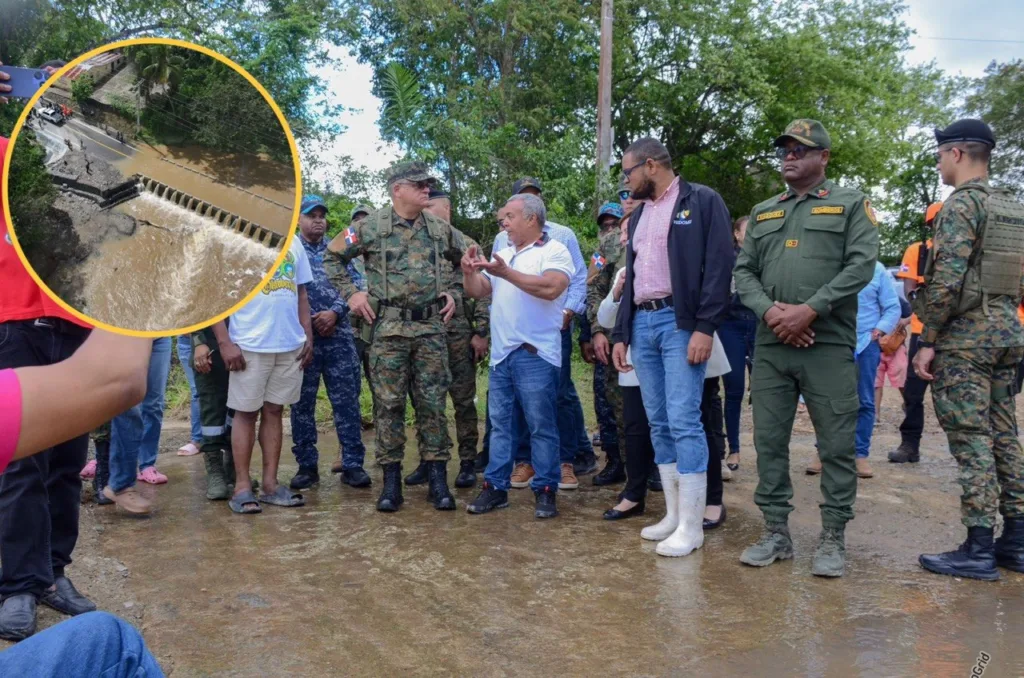 El recorrido fue encabezado por el ministro de Defensa, teniente general Carlos Antonio Fernández Onofre, quien junto a autoridades civiles y organismos de emergencia constató en el terreno los efectos provocados por el desbordamiento de ríos y cañadas, así como las inundaciones que han afectado vías de comunicación y comunidades vulnerables.