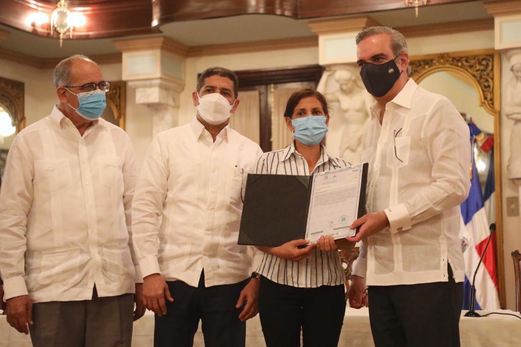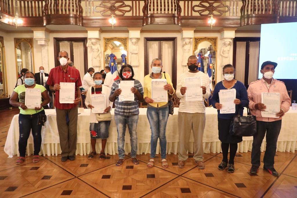 En la actividad celebrada en el salón Las Cariátides del Palacio Nacional, el mandatario estuvo acompañado de los directores del Instituto Agrario Dominicano (IAD) y de la Comisión Permanente de Titulación de Terrenos del Estado (CPTTE), Leonardo Faña y Mérido De Jesús Torres Espinal, respectivamente.