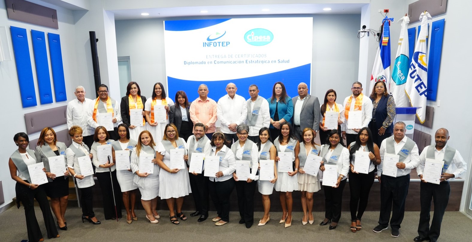 Santo Domingo RD,>Cuarenta y cuatro periodistas organizados en el Círculo de Periodistas de la Salud (CIPESA) recibieron certificados del Instituto Nacional de Formación Técnico Profesional (INFOTEP) al concluir, 39 de ellos, el diplomado en Comunicación Estratégica en Salud y 5 egresados del programa Facilitador de la Formación Profesional.