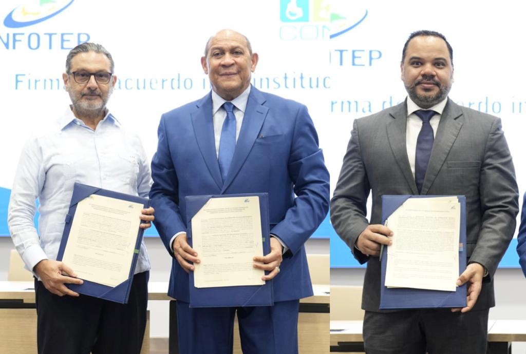 Los acuerdos, con una vigencia de dos años, fueron firmados por el director general del INFOTEP, Rafael Santos Badía; el presidente de CONADIS, Carlos José Yunén Bojos, y el Defensor del Pueblo, Pablo Ulloa.