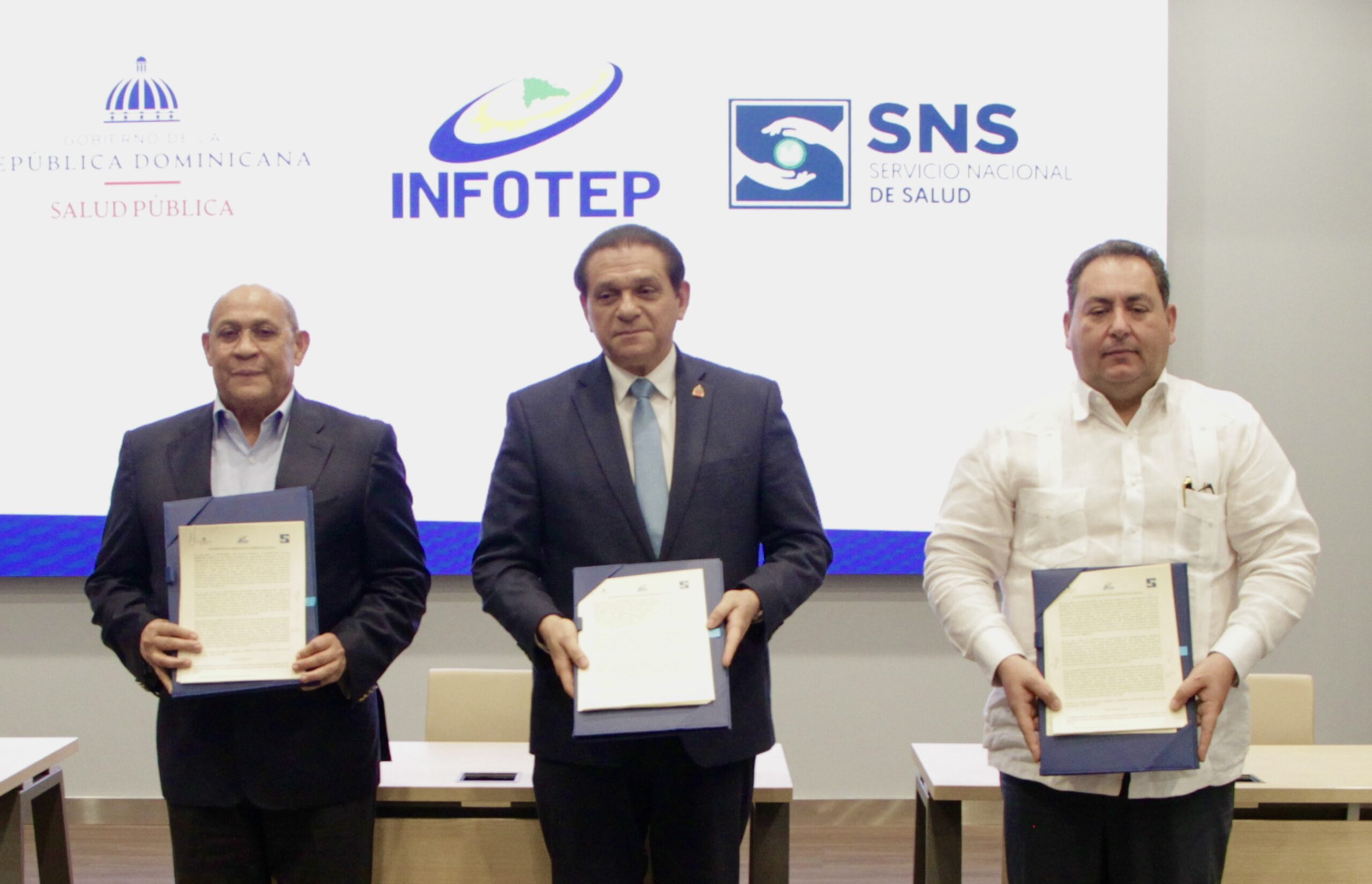Santo Domingo RD,>El Instituto Nacional de Formación Técnico Profesional (INFOTEP), el Ministerio de Salud Pública y Asistencia Social (MISPAS) y el Servicio Nacional de Salud (SNS), firmaron un convenio para fortalecer la calidad de los servicios de salud a través de un intenso programa de capacitación y la instalación de dos modernos centros de formación especializados en el área sanitaria.