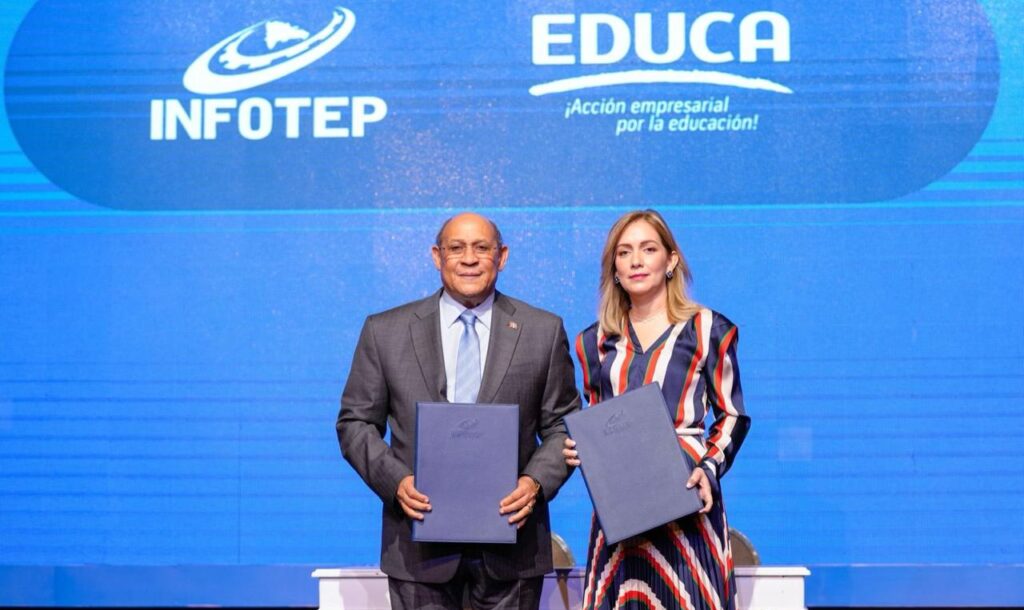 La iniciativa se realizará en virtud de una carta compromiso firmada entre el director general del INFOTEP, Rafael Santos Badía, y la presidenta de EDUCA, María Waleska Álvarez, en el marco del Congreso Aprendo 2023, que contó con la presencia de la Primera Dama, Raquel Arbaje.