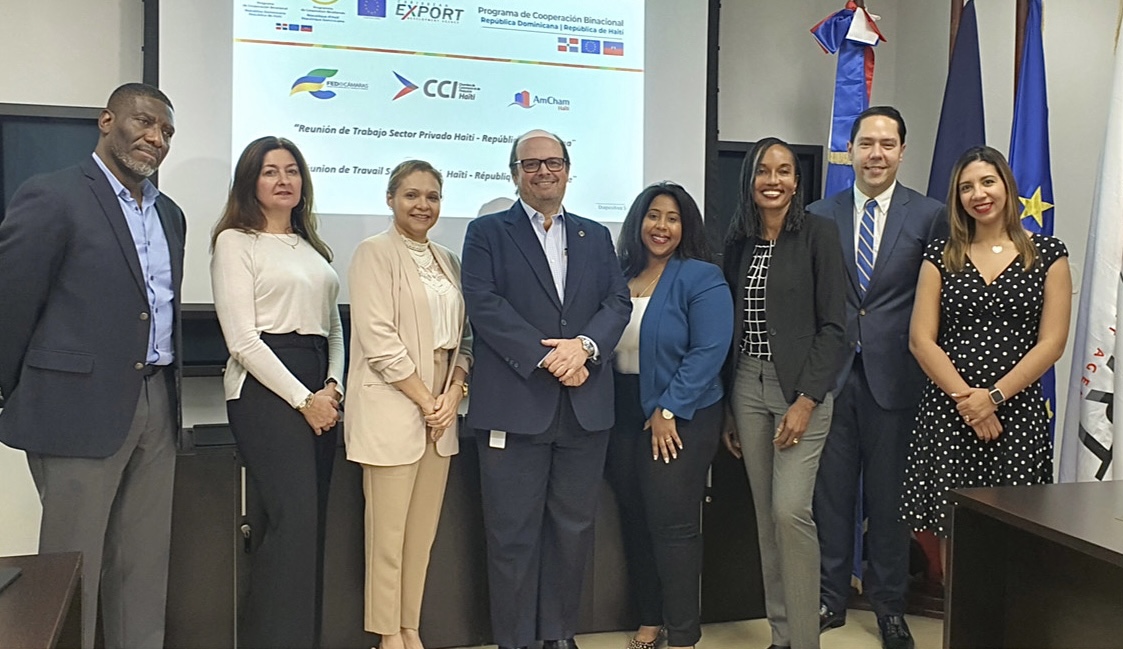 Santo Domingo RD,>Caribbean Export Development Agency (Caribbean Export), en colaboración con la Federación Dominicana de Cámaras de Comercio y Producción (FEDOCAMARAS), la Cámara de Industria y Comercio de Haití (CCIH), la Cámara Americana de Comercio de Haití (AMCHAM), la Cámara de Comercio de Agricultura y Profesionales de Haití (CHAGHA) sostuvieron un encuentro con el fin de fortalecer las alianzas estratégicas entre instituciones del sector de comercio de ambas naciones, para explorar mejores prácticas que contribuyan al aumento del intercambio formal de comercio entre ambos países.