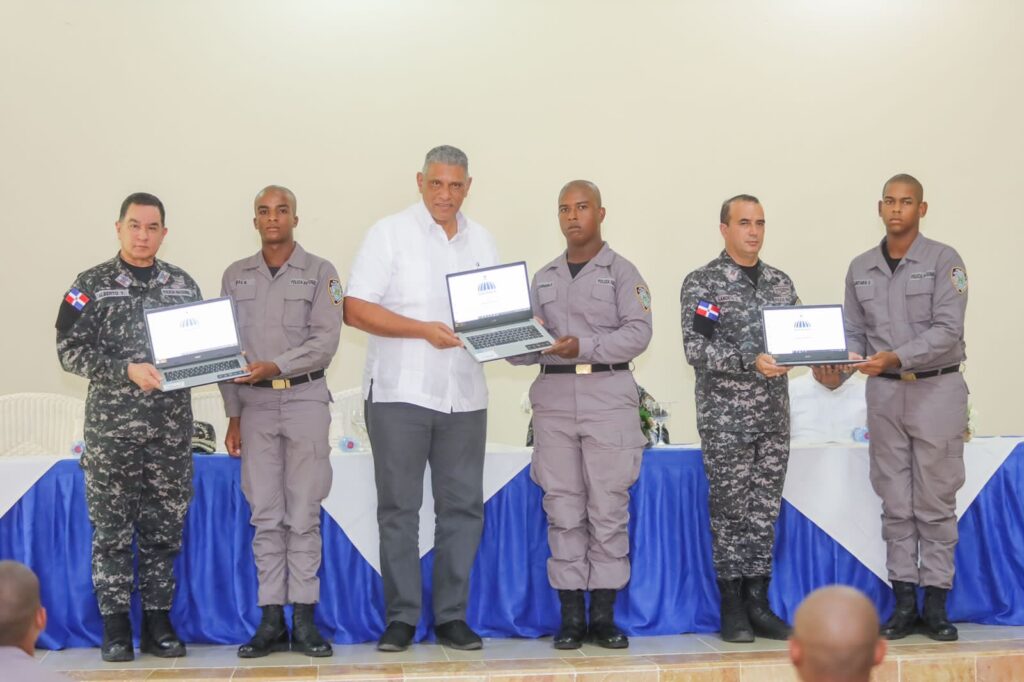 Gaspar Hernández.- Dentro del compromiso para la reestructuración educativa de la Policía Nacional, el Ministerio de Interior y Política entregó 1077 computadoras portátiles a conscriptos e instructores de la Escuela de Entrenamiento Policial.
