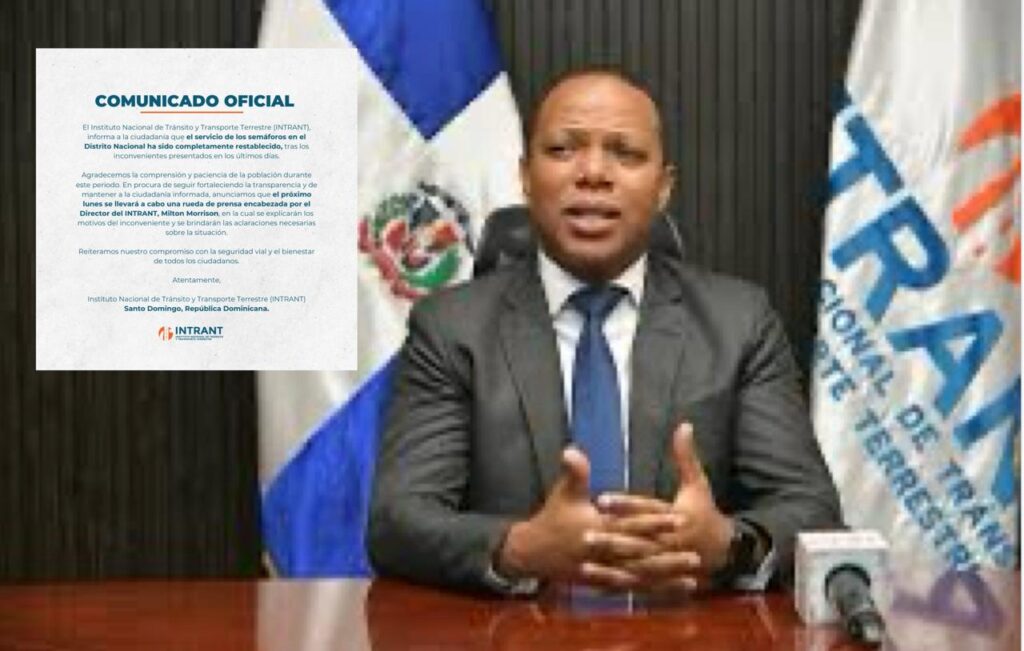 Santo Domingo RD?>El Instituto Nacional de Tránsito y Transporte Terrestre (Intrant) informó este sábado que el sistema de semáforos en el Distrito Nacional ha sido totalmente restablecido, tras el colapso sufrido ayer viernes, lo que provocó un caos en el tránsito de la capital.