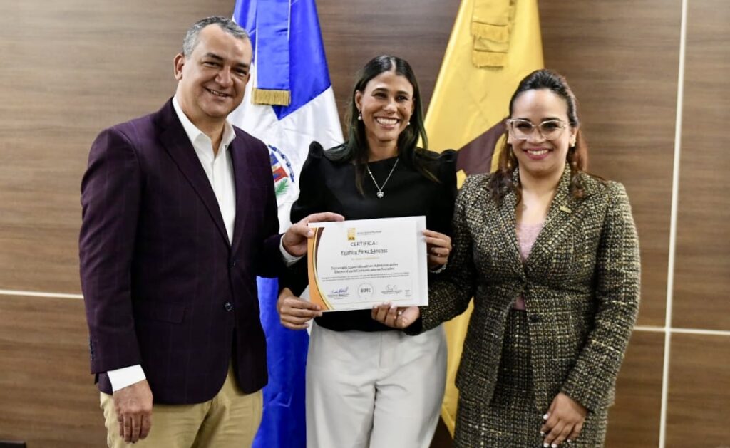 También se hicieron presentes los miembros suplentes del Pleno, Vanahi Bello Dotel y Prado López, junto con los miembros interinos de la Junta de Regentes del IESPEC y diversos vicerrectores, directores y subdirectores de la JCE, así como los profesores que impartieron el diplomado.