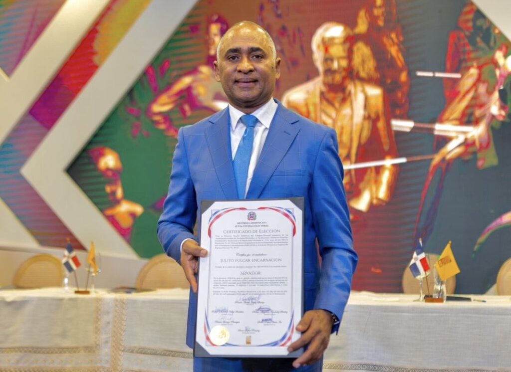 Peravia, R.D.- Este jueves el diputado y senador electo Julito Fulcar recibió de manos de Román Jaquéz, presidente de la Junta Central Electoral, la certificación que lo acredita como Senador por la provincia Peravia.