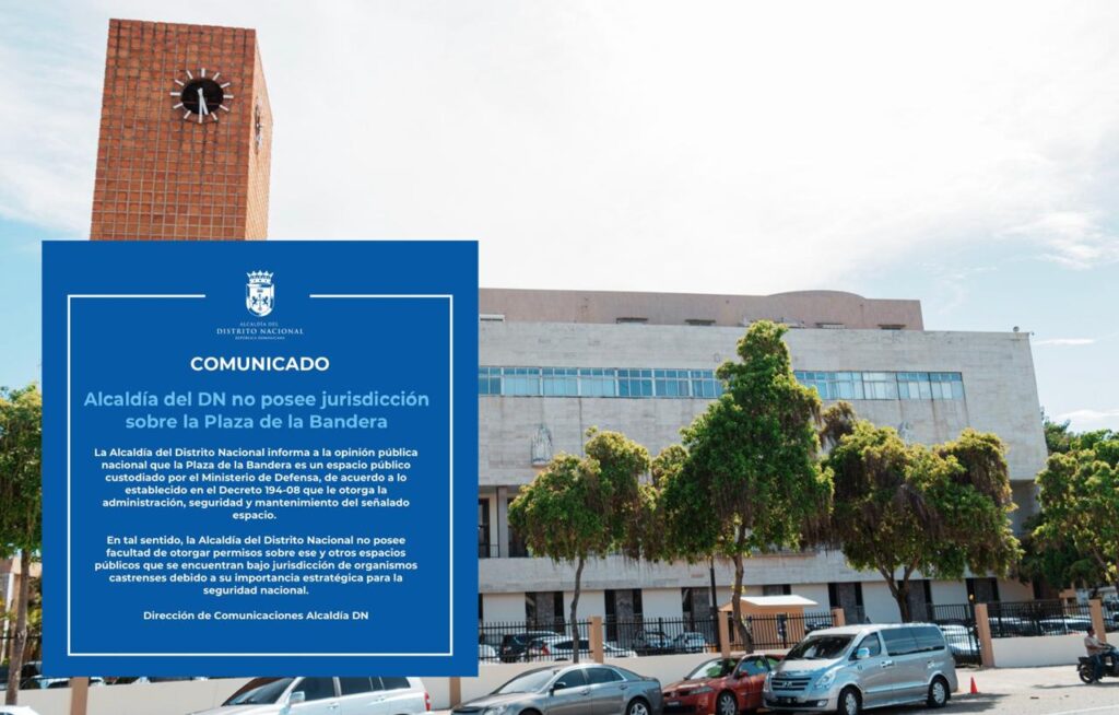 Santo Domingo, RD – La Alcaldía del Distrito Nacional (ADN) informa a la opinión pública que la Plaza de la Bandera es un espacio público bajo la custodia del Ministerio de Defensa, en conformidad con lo dispuesto en el Decreto 194-08, el cual asigna a dicho ministerio la responsabilidad de la administración, seguridad y mantenimiento de este emblemático lugar.