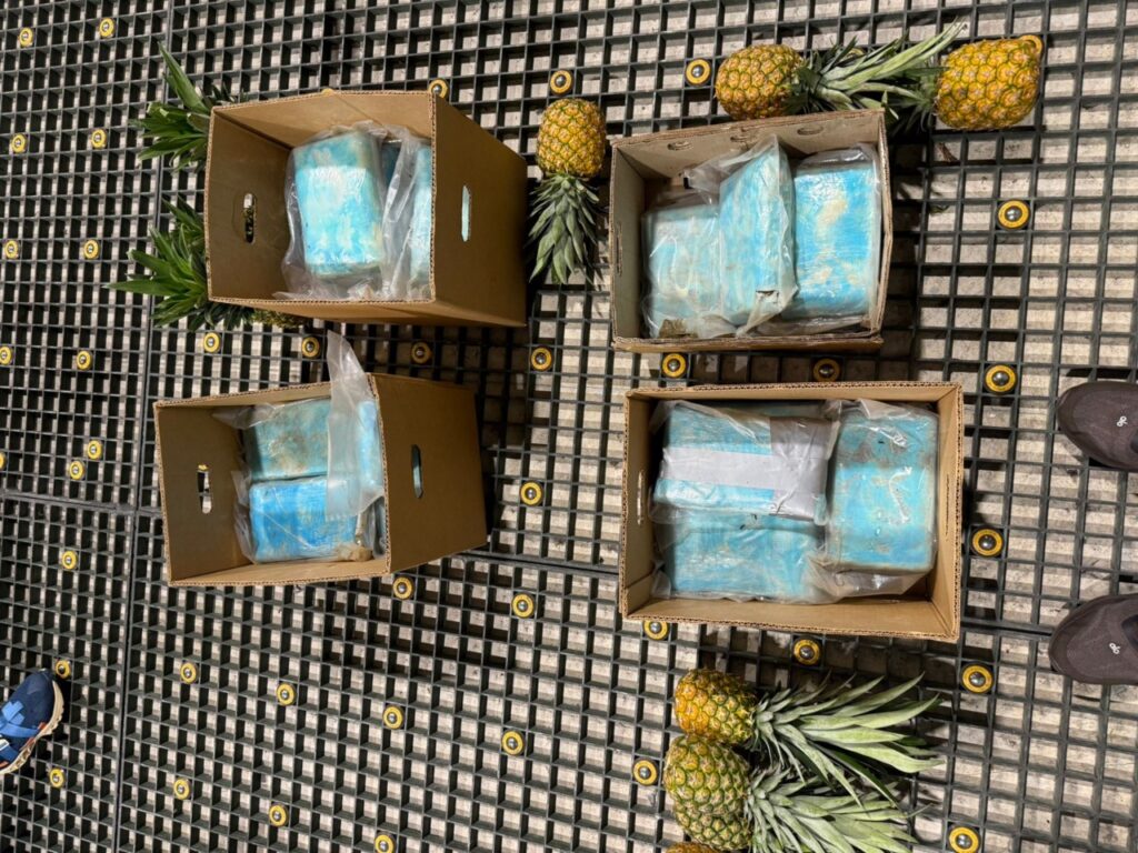 En el marco del reforzamiento de las operaciones de interdicción conjunta, los equipos operativos, junto a las unidades caninas, realizaban un operativo de inspección en uno de los depósitos de la terminal cuando detectaron inconsistencias en varias cajas de piña destinadas a exportación.