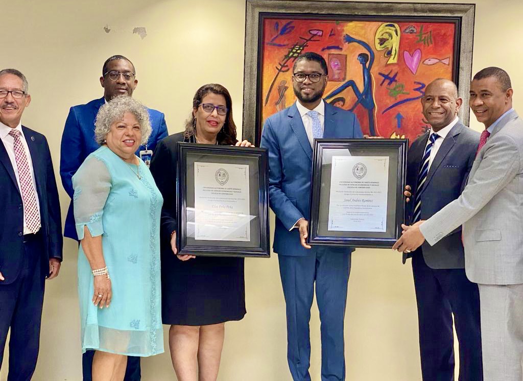 Santo Domingo RD,>El presidente de la Cámara de Cuentas de la RepúblicaDominicana (CCRD), Janel Andrés Ramírez Sánchez, fue reconocido por la escuela de Contabilidad de la Facultad de Ciencias Económicas y Sociales de la Universidad Autónoma de Santo Domingo (UASD) junto a la miembro del Pleno de la entidad fiscalizadora Elsa Peña Peña.