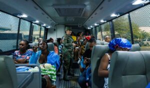 Las repatriadas fueron llevadas a abordar autobuses incorporados por primera vez a la flota de la DGM, acondicionados de comodidades especiales para transportarlas con seguridad hasta la puerta binacional de Elías Piña, donde son recibidas por las autoridades de la vecina nación.