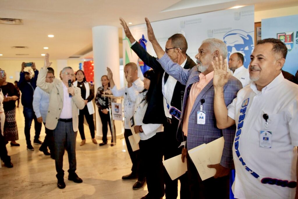 Durante un acto en el lobby del Palacio Municipal, los dirigentes comunitarios fueron juramentados por el Alcalde Manuel Jiménez, a los que recomendó enfrentar los distintos problemas sociales en unidad y armonía «Ya los problemas comunes de los sectores tienen una manera de enfrentarse de manera colectiva, quien no se organiza no avanza» resaltó el alcalde Jiménez.