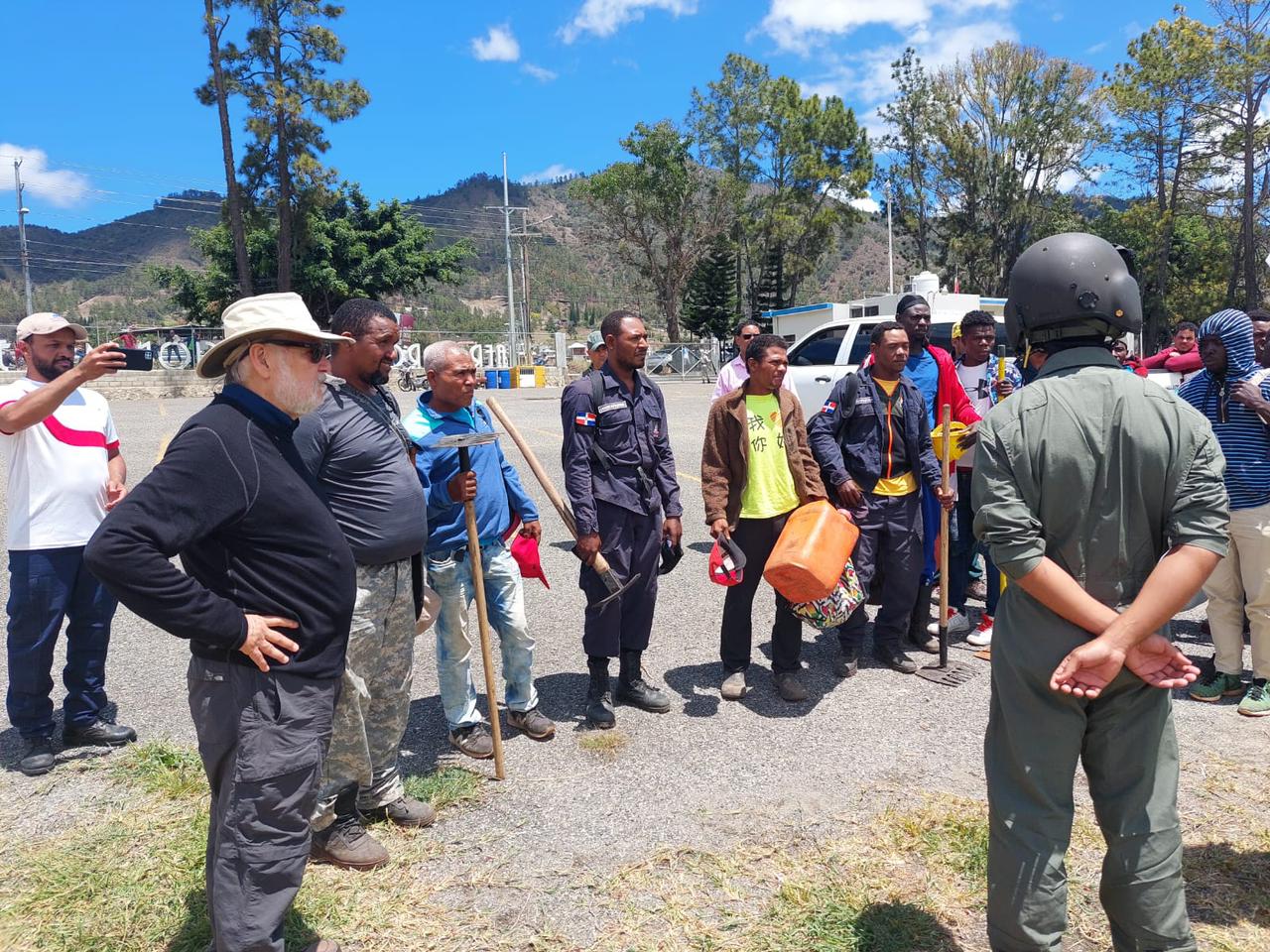 “En la vertiente sur de la cordillera Central, parte de las cuencas de los ríos Blanco y Mijo, desde el pasado viernes 7 de este mes han hecho operaciones áreas utilizando un avión y dos helicópteros de la Fuerza Aérea de la República Dominicana, como parte del apoyo que se mantiene dando el Ministerio de Defensa, seis guardaparques y más de 75 bomberos forestales aúnan esfuerzo para sofocar el siniestro”, dijo Abreu.