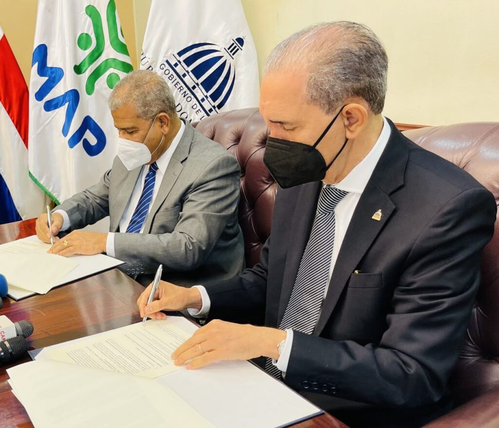 Santo Domingo RD,>Los ministerios de Educación Superior, Ciencia y Tecnología (MESCYT) y el Administración Pública (MAP) firmaron este lunes un acuerdo que tiene como objetivo implementar el Plan de Mejora del órgano regulador de la educación superior, para el fortalecimiento institucional, la calidad de los servicios que ofrece a la ciudadanía, así como transparentar y optimizar la gestión.
