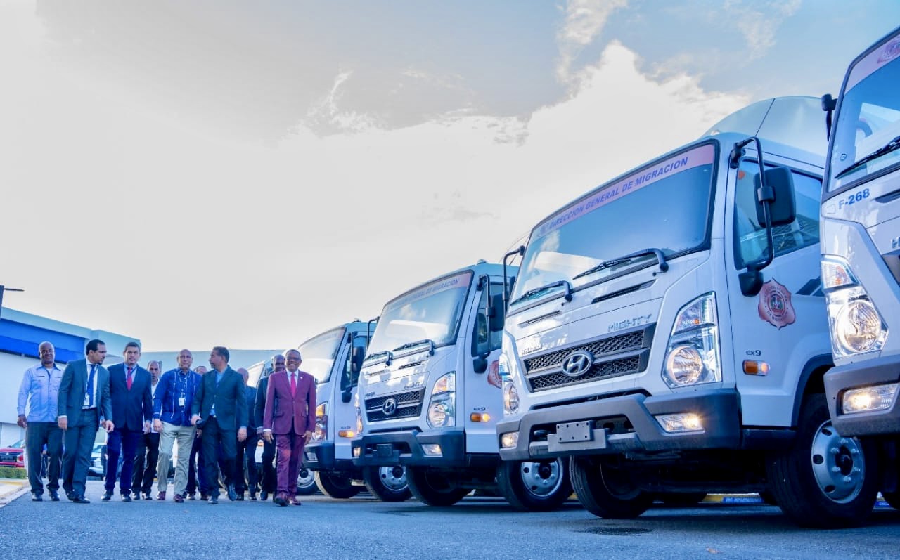 Para esos fines, fue adquirida una flotilla nueva de 20 camiones especiales y preparados para la detención y traslado de indocumentados a través de las interdicciones que se implementan de manera simultánea y sistemática en toda la geografía nacional.
