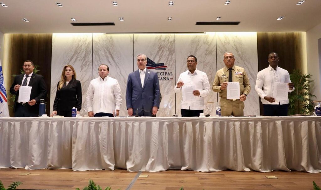 Santo Domingo RD, -El presidente Luis Abinader encabezó un encuentro con los alcaldes del país, donde la Dirección General de Migración (DGM), la Liga Municipal Dominicana (LMD), la Federación Dominicana de Municipios (FEDOMU) y la Federación Dominicana de Distritos Municipales (FEDODIM), firmaron un acuerdo para apoyar las medidas que el gobierno implementa para enfrentar la inmigración ilegal y fortalecer la soberanía nacional.