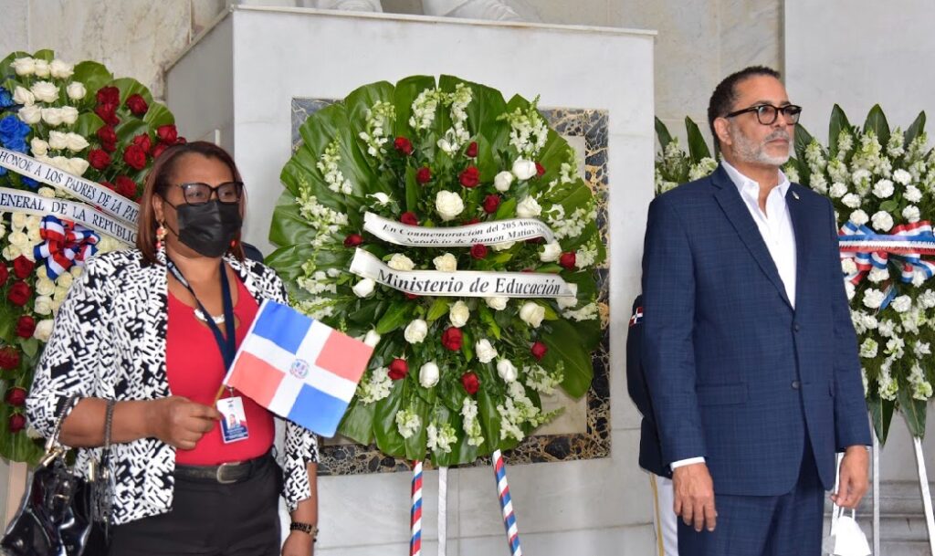 Santo Domingo RD,>Con motivo de cumplirse el 205 aniversario del natalicio del patricio Matías Ramón Mella, el Ministerio de Educación depositó una ofrenda floral en el Altar de la Patria.
