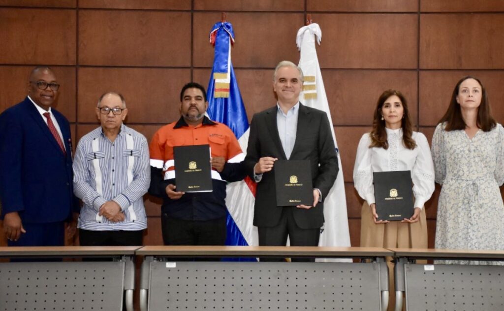 Santo Domingo RD,>El ministro de Trabajo, Luis Miguel De Camps García, encabezó la firma del Convenio Colectivo de Condiciones de Trabajo 2023-2025, entre la empresa Pueblo Viejo Cotuí Barrick (PVC-Barrick) y el Sindicato Unido de Trabajadores de la Empresa Minera Pueblo Viejo Cotuí (SUTRABARRICK).