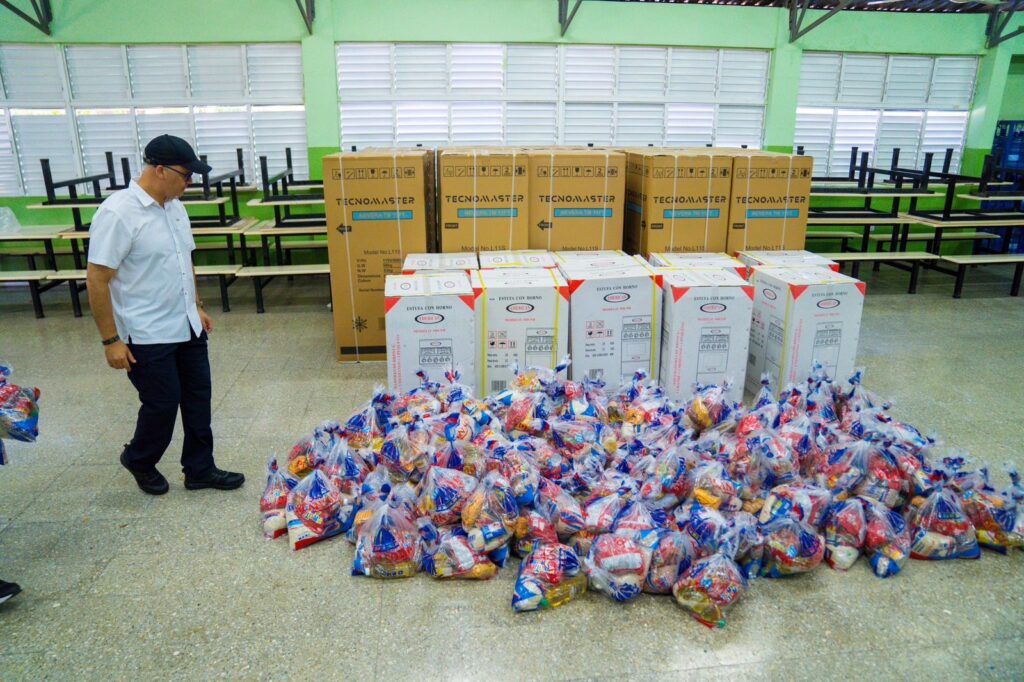 El ministro Rodríguez regresó pasadas las 10:30 de la mañana para entregar raciones de alimentos del Plan de Asistencia Social de la Presidencia, además de neveras, estufas, camas, entre otros elemento del hogar.