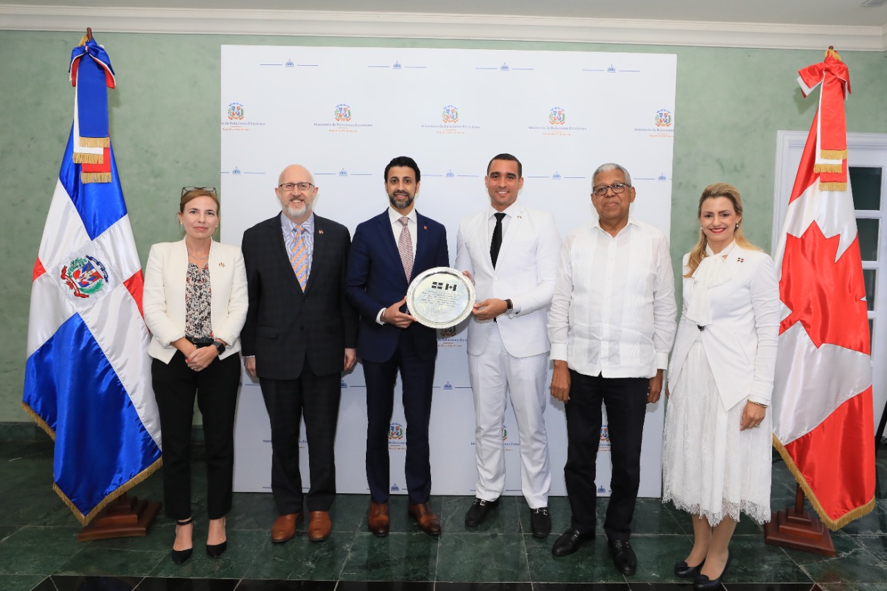 En nombre del canciller Roberto Álvarez, el viceministro Gómez entregó al parlamentario un obsequio conmemorativo a la celebración del 68 aniversario de las relaciones diplomáticas entre Republica Dominicana y Canadá.