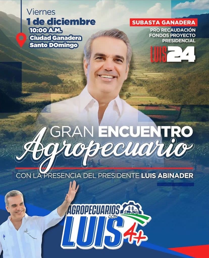 Santo Domingo RD,>El sector externo Movimiento Agropecuarios Con Luis 4+ realizará una gran subasta ganadera el próximo 1 de diciembre a las 10:00 de la mañana.
