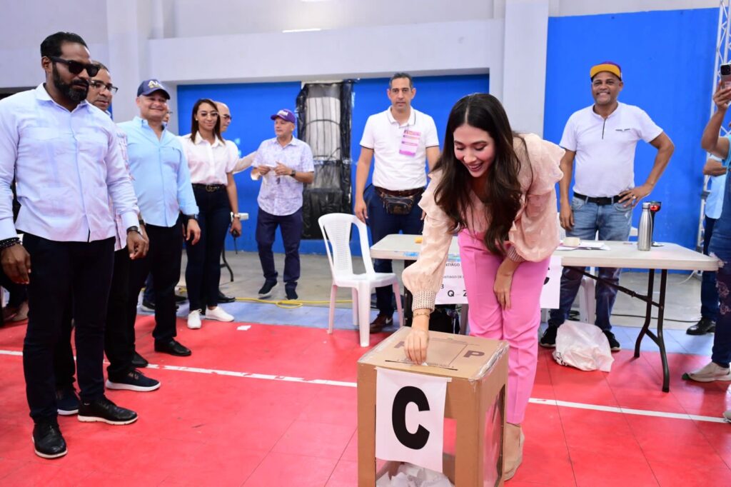 Nahiony Reyes vota en asamblea del PLD en Santiago