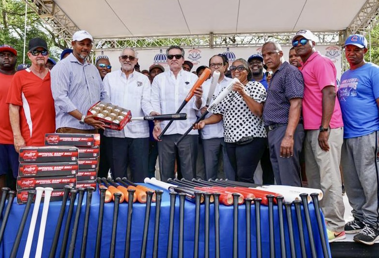 Posteriormente entregó decenas de bates de aluminio, cajas de pelotas y otros equipos deportivos a los entrenadores y presidentes de ligas participantes en el torneo.