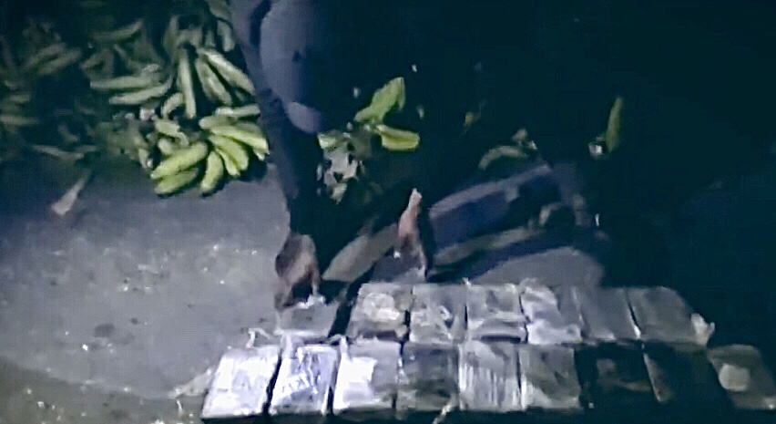 Luego y en presencia de varios fiscales, se procedió hacer una inspección más rigurosa, ocupando dentro de la carga de plátanos, los 37 paquetes de la sustancia que se presume es cocaína.