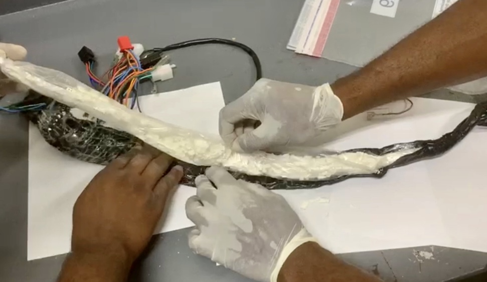 Santo Domingo RD,>Agentes de la Dirección Nacional de Control de Drogas (DNCD) con apoyo de Inspectores del Instituto Postal Dominicano, (INPOSDOM) y bajo la coordinación del Ministerio Público, ocuparon casi un kilo de cocaína camuflados en piezas de motocicletas que serían enviadas a Estados Unidos.