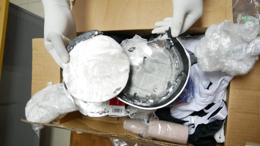Los recipientes de cocina, con la sustancia con doble capa en su estructura, iban a ser enviados a Alemania, a través de una compañía de envíos internacionales, ubicada en el Distrito Nacional.