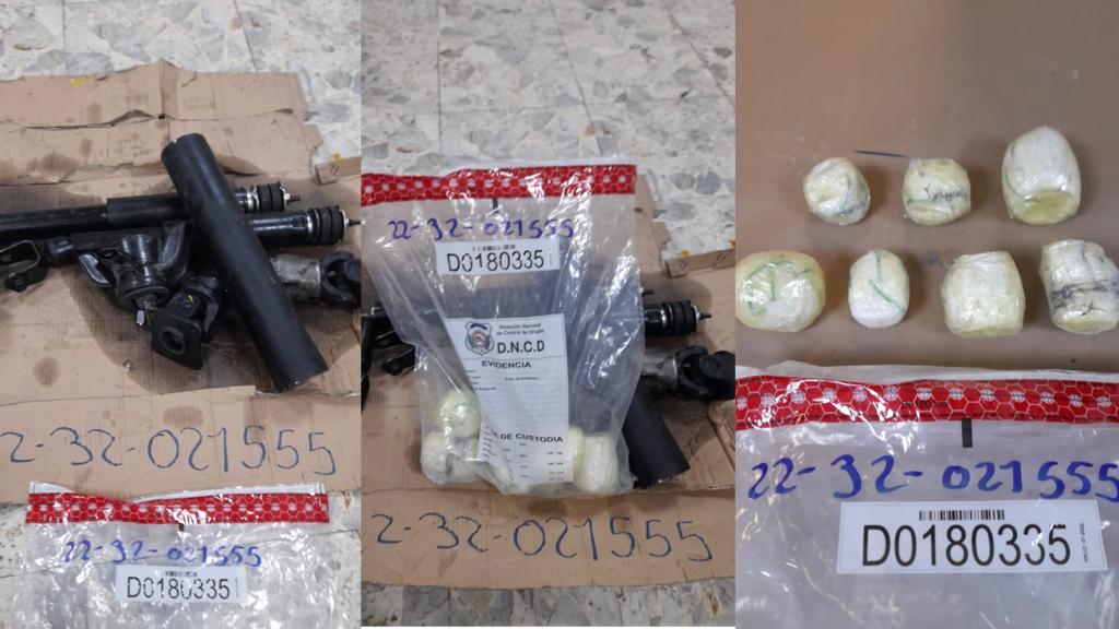 Posteriormente, en presencia de un fiscal adjunto de inicio el protocolo de inspección, encontrando en el interior de la caja dos piezas metálicas, (un cardan y un amortiguador), detectando en el interior del primero, siete porciones de cocaína, con un peso de 890 gramos, según el análisis del Instituto Nacional de Ciencias Forenses (INACIF).