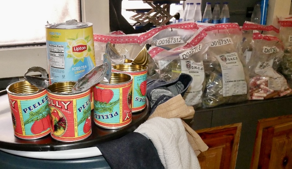 En presencia de un fiscal adjunto, se procedió a inspeccionar uno de los tanques, conteniendo comida y ropa usada, así como varias latas, las cuales al ser abiertas se descubrió que estaban rellenas de marihuana.