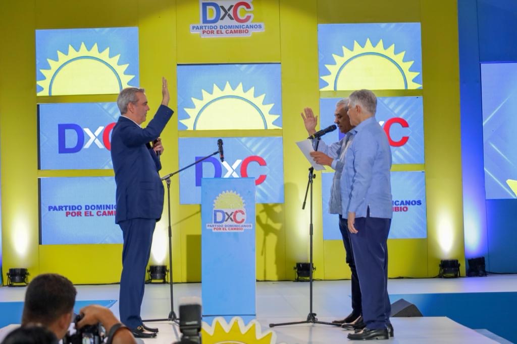 El masivo acto de proclamación, estuvo encabezado por la primera dama de la República, Raquel Arbaje; Eduardo Estrella, líder político de Dominicanos por el Cambio, junto a su esposa, Arelis Cruz de Estrella; y Mateo Espaillat, presidente de DxC, quien juramentó a Abinader Corona en el Pabellón de Voleibol del Centro Olímpico Juan Pablo Duarte, en donde se congregaron miles de simpatizantes y militantes del partido.