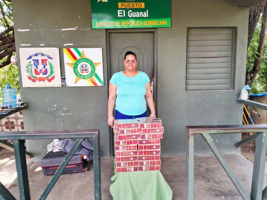 Santiago Rodríguez RD, -Una mujer, pasajera de un autobús en Santiago Rodríguez, fue detenida por miembros del Ejército de República Dominicana, por llevar 13,800 cigarrillos de procedencia ilegal.