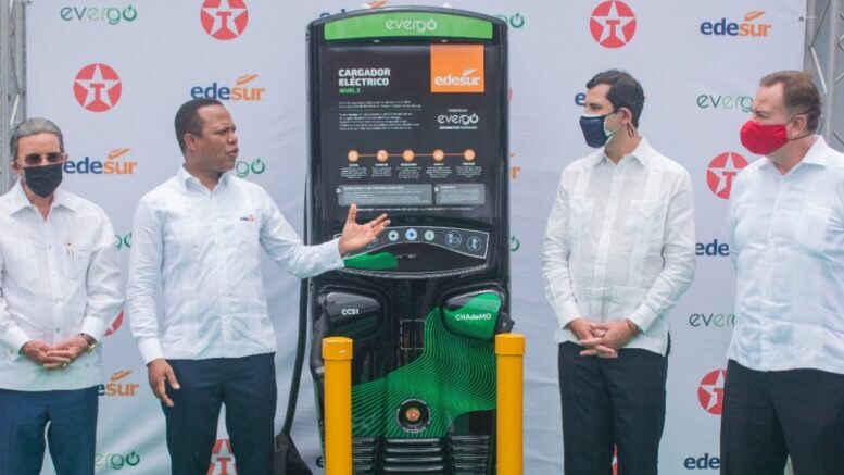 Santo Domingo RD,>La empresa Edesur Dominicana e InterEnergy Systems informaron este miércoles que pusieron en funcionamiento la primera de una serie de estaciones de carga Evergo para vehículos eléctricos, ubicada en el sector Renacimiento de la ciudad de Santo Domingo, como resultado de una alianza estratégica para impulsar la movilidad sostenible en el país.