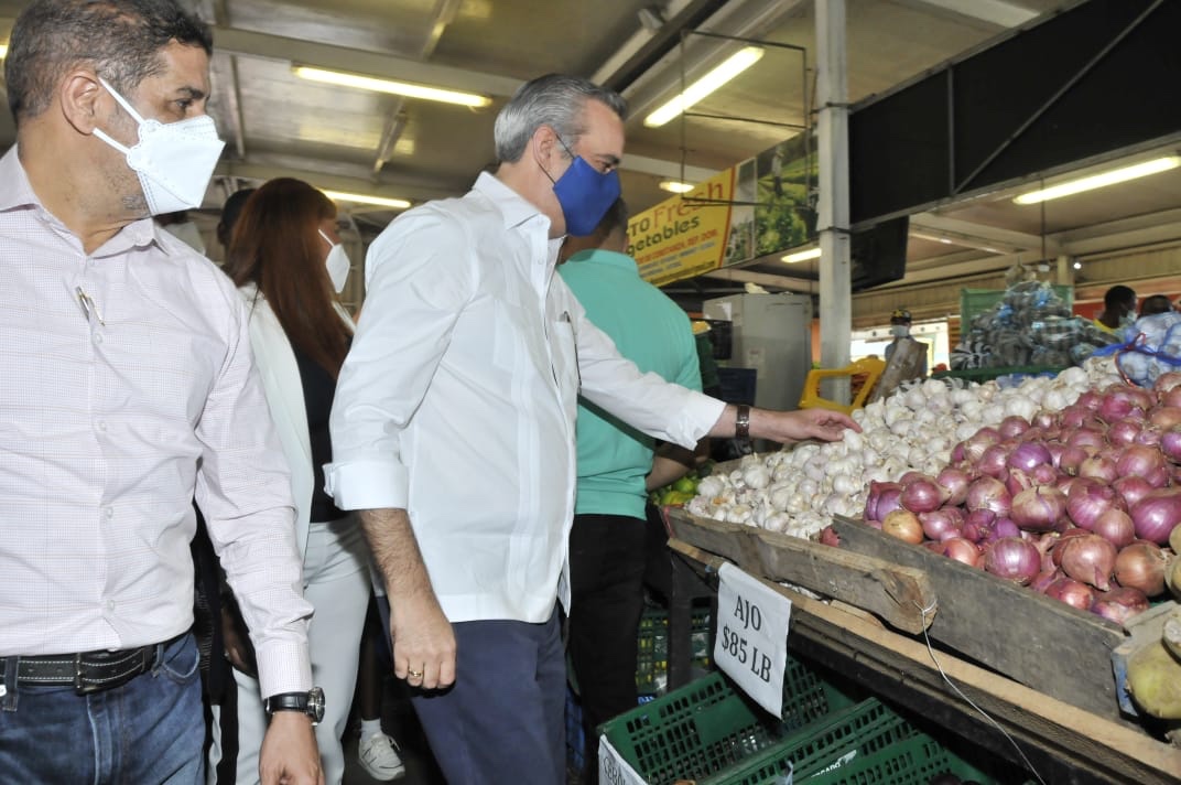 El presidente Abinader indicó que acudió al Merca Santo Domingo a hacer un contacto con las asociaciones de vendedores, el Ministro de Agricultura, las autoridades del Merca y las asociaciones y ver también los precios de los artículos de primera necesidad.