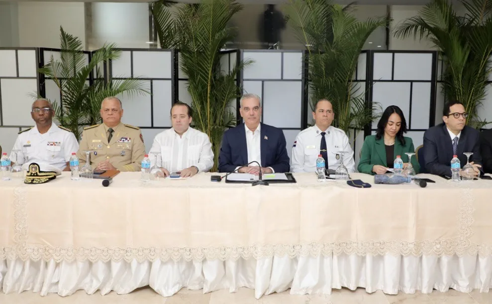 En compañía del mandatario se encuentran el ministro de la Presidencia, José Ignacio Paliza; el ministro de Defensa, teniente general Carlos Antonio Fernández Onofre; la Procuradora General de la República, Yeni Berenice Reynoso, vía Zoom; el comandante general de la Armada de República Dominicana, vicealmirante Juan Bienvenido Crisóstomo Martínez; el director general de Migración, vicealmirante Luis Rafael Lee Ballester; el presidente de la Dirección Nacional de Control de Drogas, vicealmirante José Manuel Cabrera Ulloa; el comisionado ejecutivo para la Reforma Policial, Luis Ernesto García Hernández, y los viceministros de la Presidencia para Proyectos Especiales y Coordinación de Seguridad, Roger G. Pujols y de Función Pública, Grey Peña.
